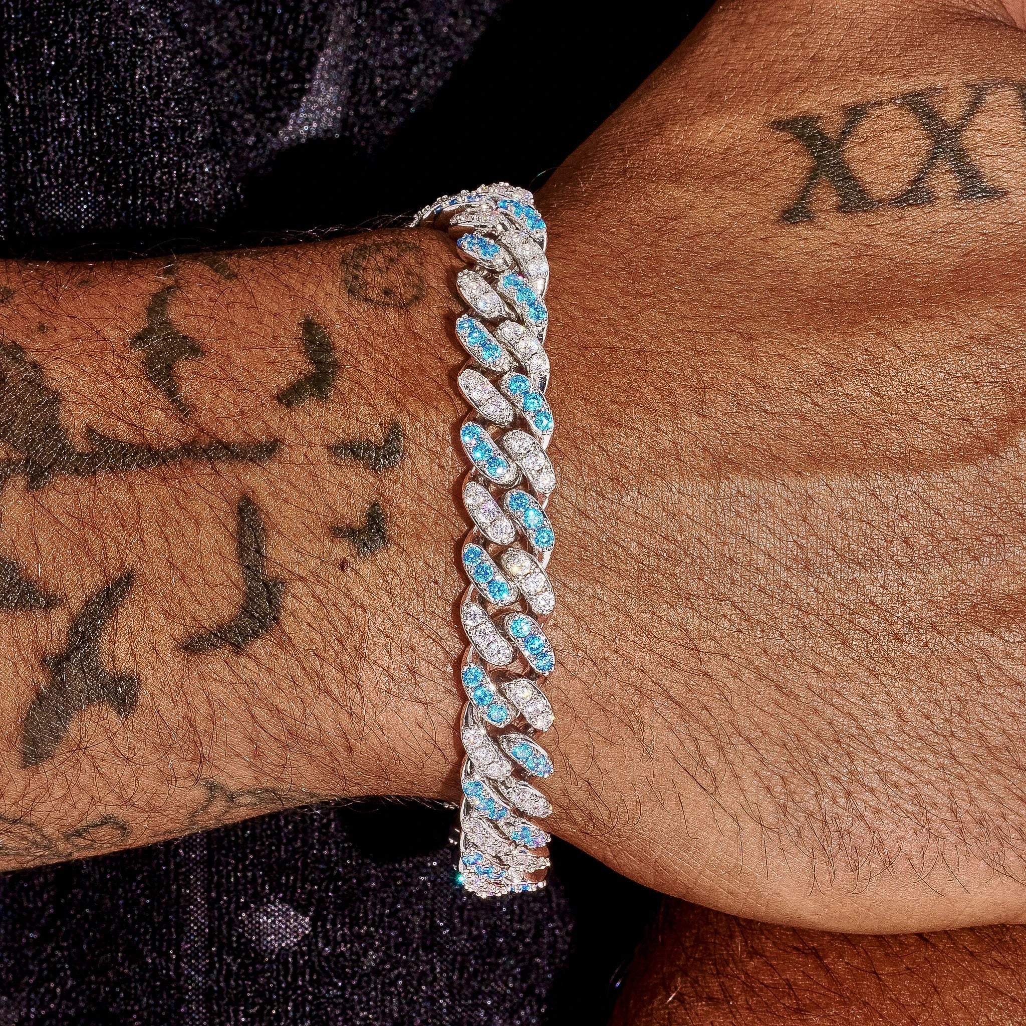 A one of a kind unique bracelet with white & blue stones that have been handset to catch light from all angles. Outshine the rest with this standout piece.