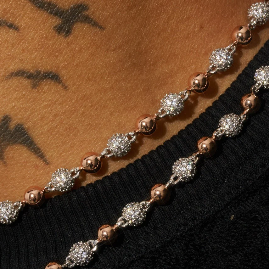 Inspired by Bugzy Malone's iced two-tone ball chain, we've reimagine and recreated a sleeker more subtle chain to complete your fit. Each rose gold ball link has been hand polished for a perfect finish.