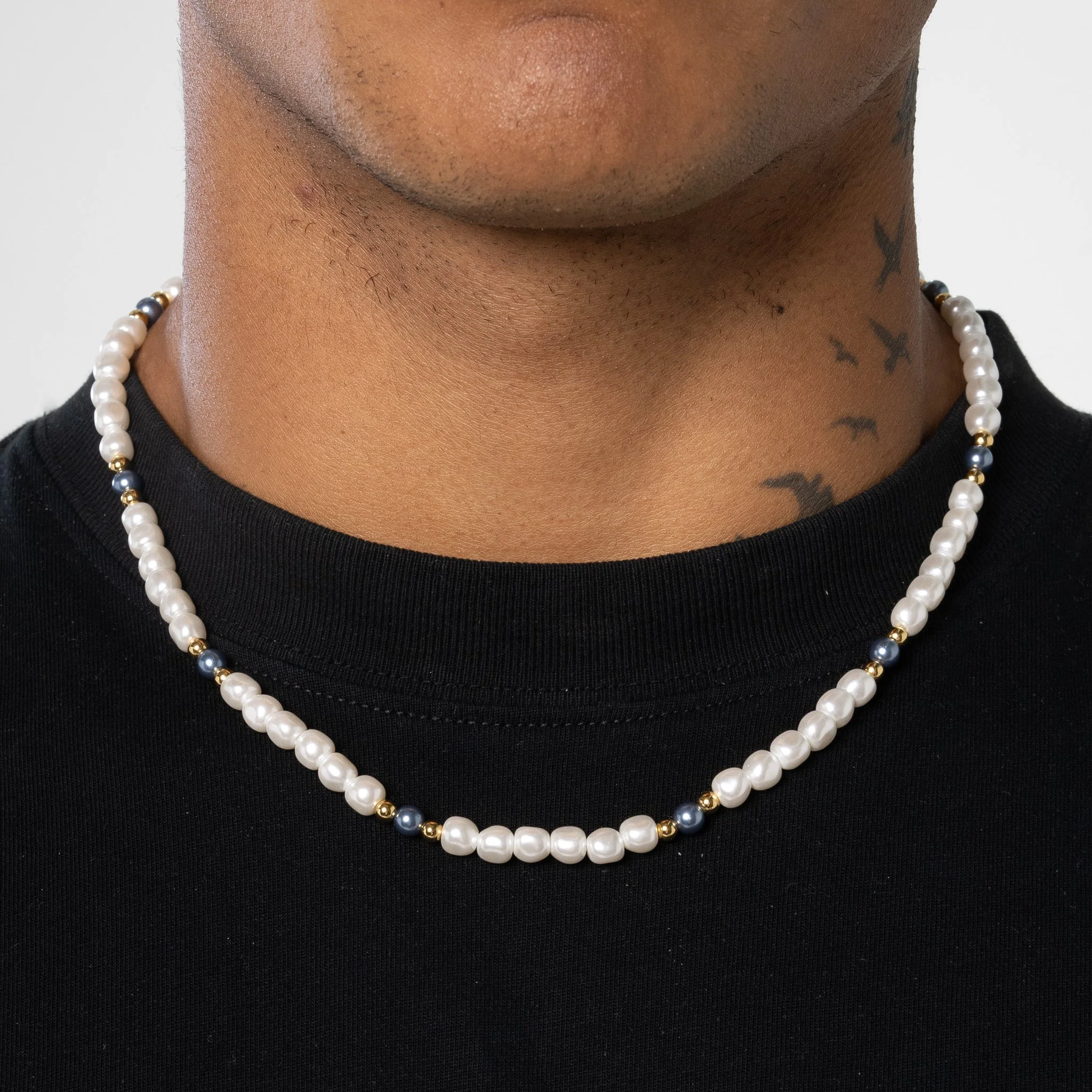 5mm Beaded Two Tone Pearl Necklace - Gold